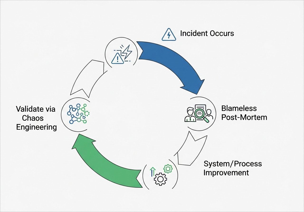 Ultimately, resilience is profoundly cultural. The most robust technical patterns will crumble under a dysfunctional team dynamic. Teams that resort to individual blame after outages learn nothing. Instead, they foster fear and inhibit the sharing of critical information.